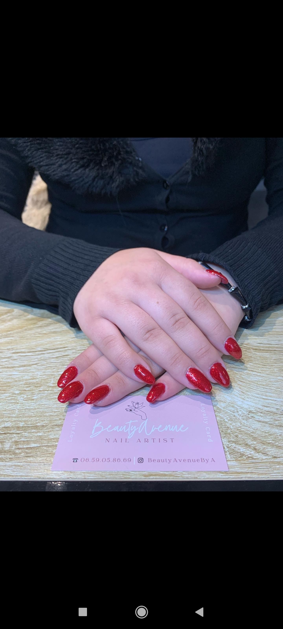 Posté le 16/11/2022 à 20:40"ALLEZ-Y LES YEUX FERMÉS !! 😊👌 Excellente : Très honnêtement, c'est la meilleure prestation que j'ai eue et que je pense avoir de toute ma vie. Une personne hautement compétente (elle sait exactement ce qu'elle fait, pourquoi elle le fait et si c'est bien ou non pour vos ongles), très bienvellante et une magnifique âme. Non seulement je suis ULTRA AMOUREUSE de mes ongles et fascinée par la haute compétence de la Nail artist (si vous voyez la photo d'avant ci-dessous, vous comprendrez qu'on partait de très loin), mais je suis aussi admirative du moment de qualité que j'ai passé chez cette belle femme dans une atmosphère cozy, chaleureuse et totalement apaisante ❤️ Pour mes ongles, il s'agit de rallongement au chablon (car j'ai les ongles fragiles), et du vernis semi-permanant rouge vif avec paillettes ( CANON 💃) Mille merci à Beauty Avenue. Je reviendrai sans aucune hésitation 🌹"