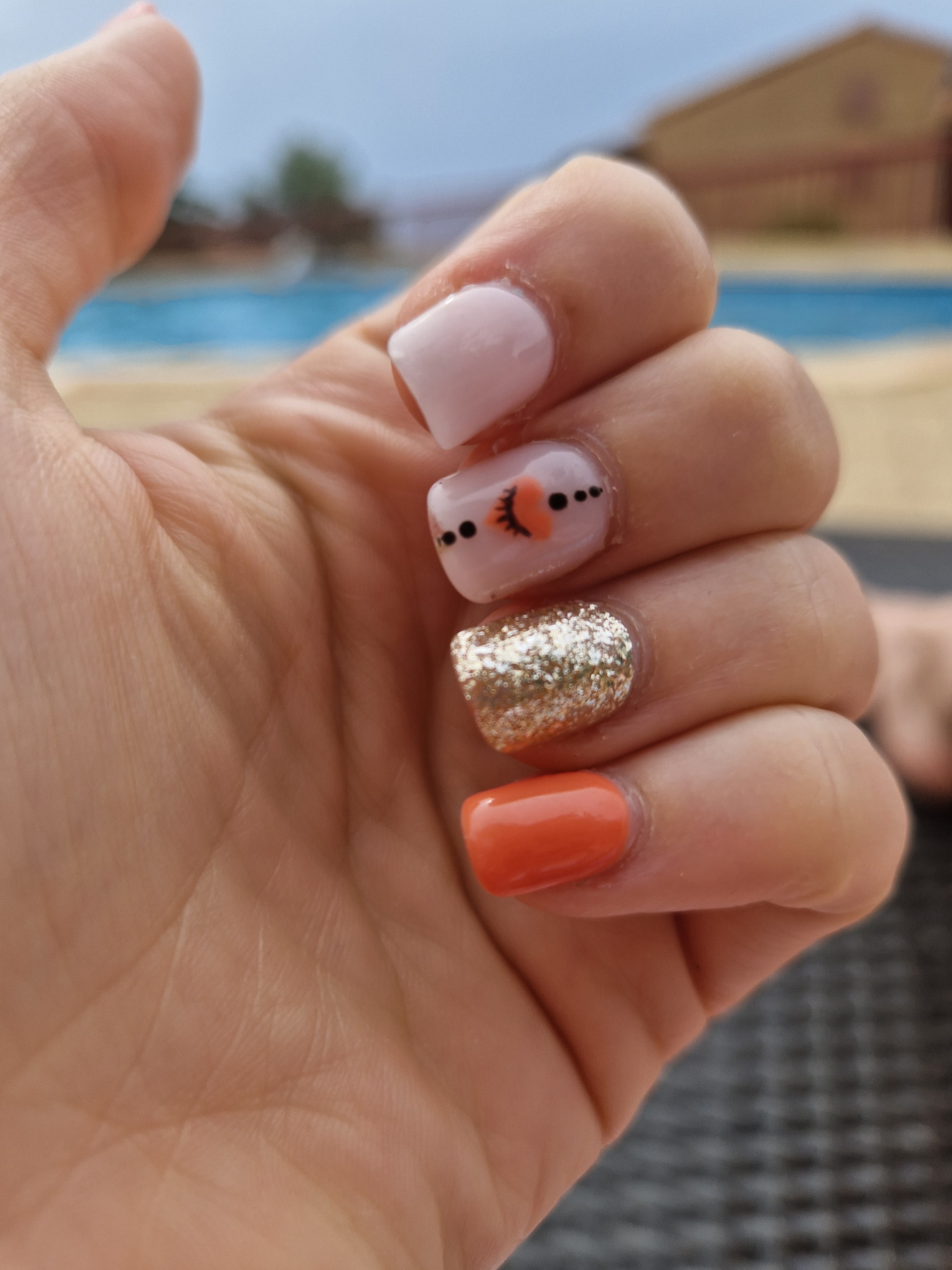 Pose réaliser début août ongle cassant lors de la pose de la pause de petite bulle et n’a pas reboucher donc toute les saletés se sont incrusté dedans impossible de les enlever mais ayant fais de même pour les pieds qui elles a bien tenue