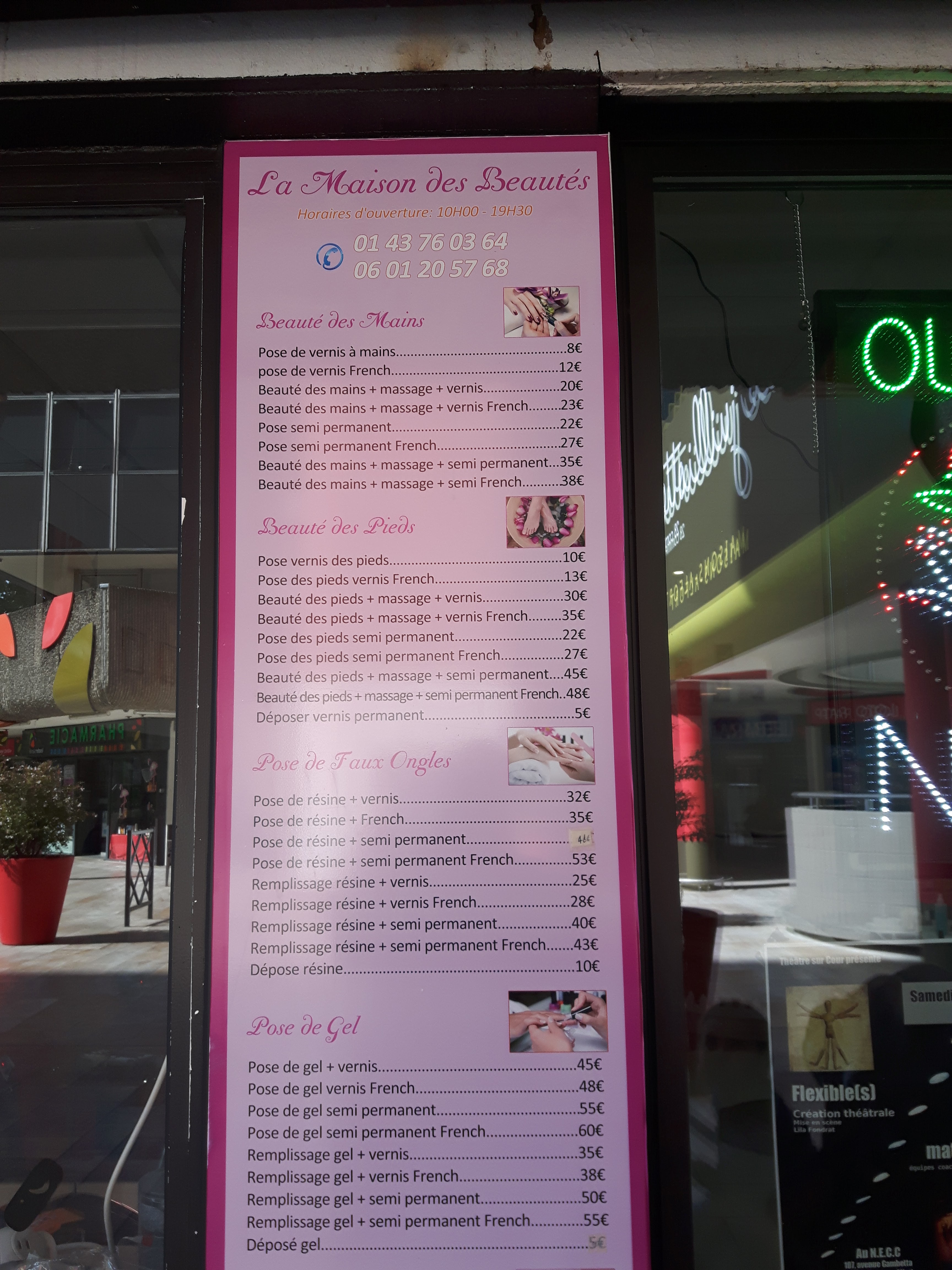 Bonnes prestations , j ai fait les ongles semi permanent et beauté des pieds. L estheticienne a ete tres rapide tout en faisant un travail soigné. J y retournerai